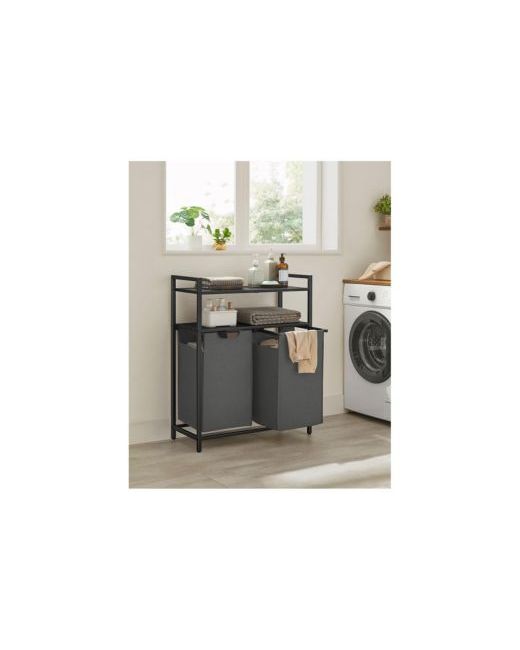 Efficiently organize laundry with this black or white hamper, featuring Mdf, steel, and Oxford fabric construction. With 2 compartments and 2 shelves, it offers divided storage and extra space for toiletries. Pull-out, removable liners and sturdy design make laundry chores a breeze.
