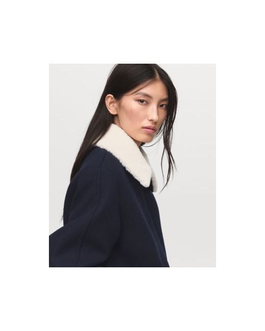 Women's Dark Blue Borg Collar Wool Blend Jacket
