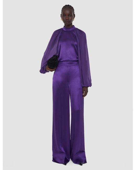 The Dijon Double Satin Trousers are a high-rise, wide leg trouser, crafted from a responsibly sourced acetate blend known for silky-soft hand feel and fluid drape. A flat front and elasticated back waistband ensure both a clean finish and elegant silhouette. They're thoughtfully finished with a deep hemline detail.
