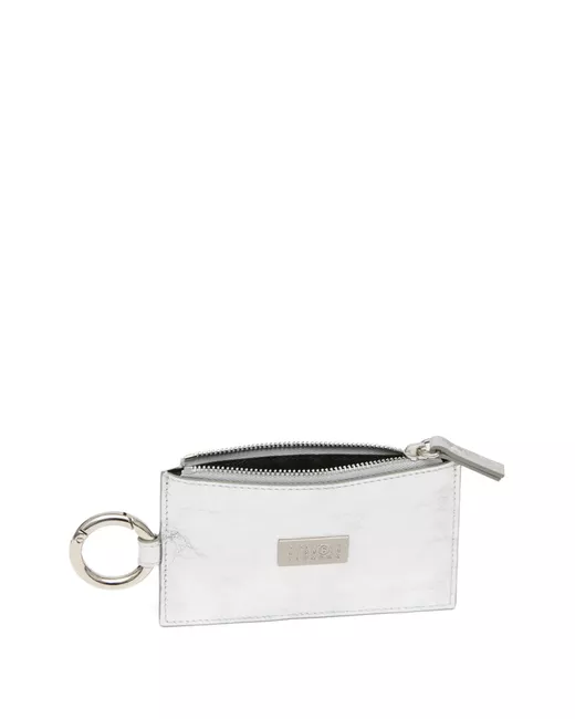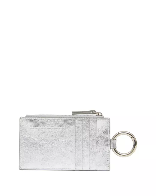 silver-tone calf leather zip fastening ring detail card slots logo plaque