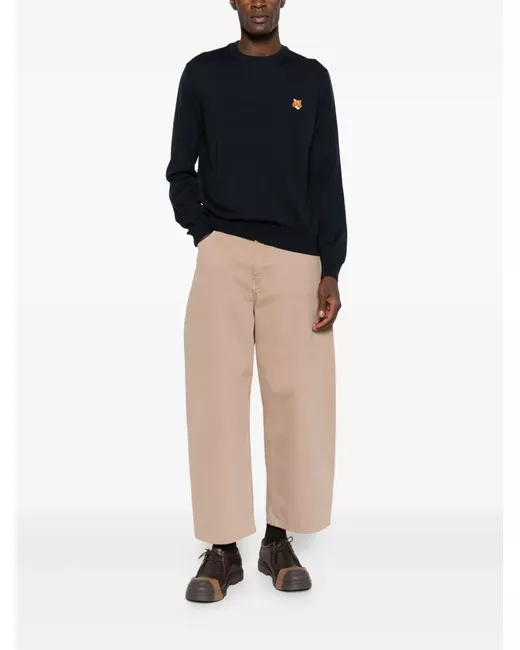 black wool signature Fox Head detail crew neck long sleeves ribbed cuffs and hem