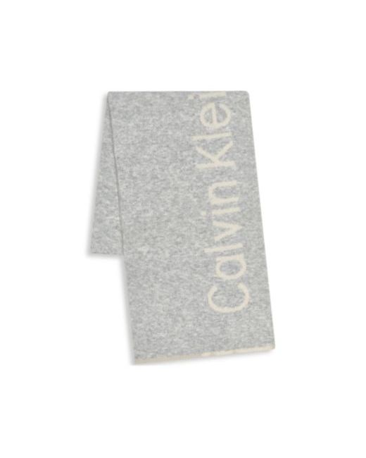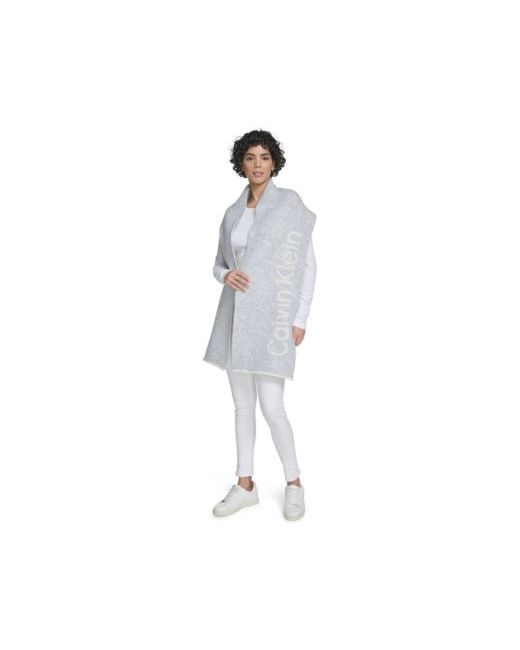 Bundle up in style with this Calvin Klein scarf, featuring a double-faced jacquard logo. It is crafted from soft jersey knit with feather yarn on the back for added warmth and comfort.