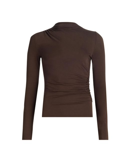 Crafted from soft-gauge jersey, Rails' Joelle top is a modern take on the long-sleeve silhouette. This piece features an asymmetric mock turtleneck and shirring details from the right shoulder. Asymmetric mock turtleneck Shirred shoulder Long sleeves Pulls over 95% modal/5% spandex Hand wash Imported SIZE & FIT About 22" from shoulder to hem Model measurements: 5'10" tall Model is wearing a US size Small. Contemporary Sportswear - Casual Separates > Rails > Saks Fifth Avenue. Rails. Color: Espresso. Size: Small.