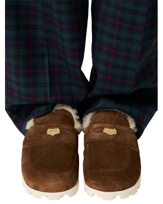 Upper with leather band and logo-engraved metal coin Shearling lining Embossed logo on the tongue EVA sole Star-patterned tread Shearling-covered insole 100% Calfskin Fur Type: Sheep Fur Origin: Portugal Fur Treatment: Dyed Imported. Lsd Handbags - Miu Miu > Miu Miu > Saks Fifth Avenue. Miu Miu. Color: Brown. Size: 6.