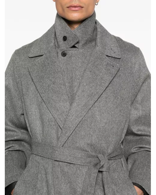 grey layered design front button fastening detachable and adjustable waist belt long inner vest
