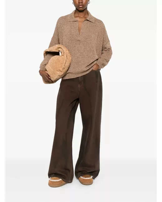 toffee brown collared V-neck long sleeves ribbed cuffs and hem