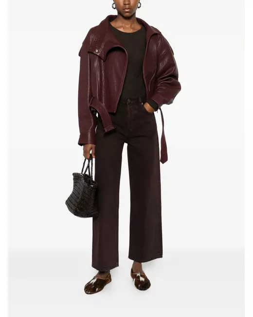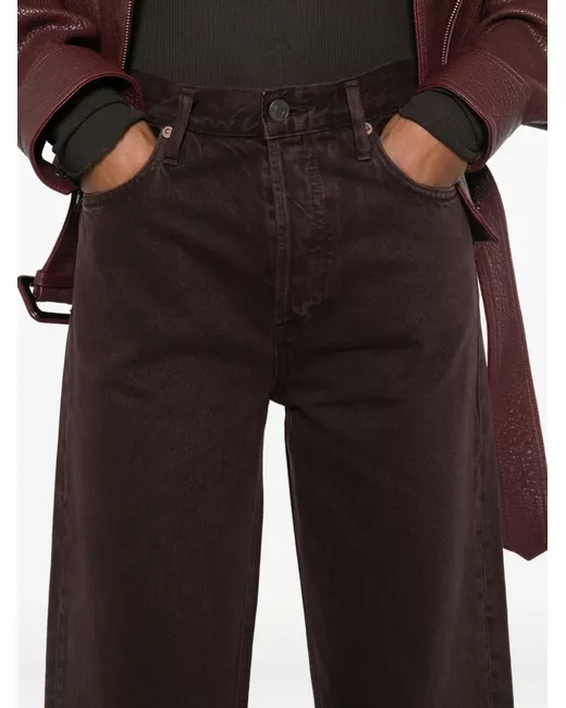 dark brown five pockets belt loops button fastening topstitching straight leg