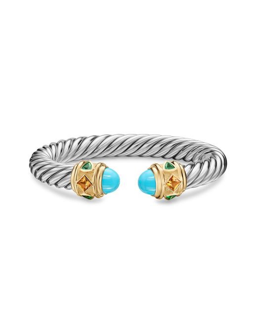 A David Yurman icon, the renaissance cable bracelet combines sculptural form with the brilliant jewel tones found in classical painting. Sterling silver and 14-karat yellow gold Hematine, rhodolite garnet and iolite Bracelet, 9mm Nitinol core to provide flex movement Size Small (S) fits wrists up to 5.84in. Made in Italy ABOUT THE BRAND David, a sculptor, and his wife, Sybil, a painter, launched their innovative jewelry brand in 1980 in New York City. Since then, the American design house has pioneered cutting-edge collections from its iconic combination of sterling silver and diamonds to signature pinky rings. Today, with their son Evan, the Yurmans continue to deliver timeless pieces inspired by nature, art, ancient symbols and Manhattan's stunning architecture. Lsd Jewelry - David Yurman > David Yurman > Saks Fifth Avenue. David Yurman. Color: Reconstituted Turquoise. Size: Medium.