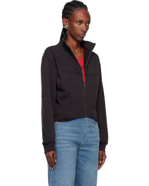 Cotton fleece sweatshirt. Constructed with upcycled sweatshirts. · Rib-knit stand collar and cuffs · Patch pockets at chest · Raw edge at curved hem · Logo flag at back collar Supplier color: Zip up black