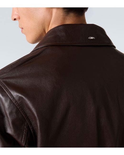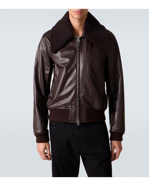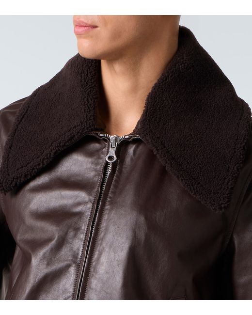Material: 100% calf leather. Care instructions: specialist clean. Made in Turkey. Designer color name: Umber Brown Fluid Calfskin. Item color: brown. Trim: 100% shearling. Lining: 52% viscose, 48% cotton. Contains non-textile parts of animal origin. Hardware color: silver. Detachable collar. Cuff: ribbed. Pockets: buttoned pockets, internal pocket. Closure: two-way zipped front. Hem: ribbed. Leather.