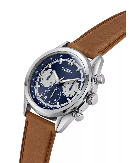 dark blue dial round case shape 44mm case size chronograph sub-dials Tachymeter bezel feature silver-tone case quartz movement push crown water resistance up to 50m/5 ATM This item comes with a standard one-year warranty from the boutique.