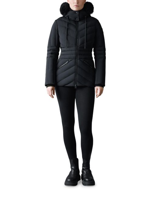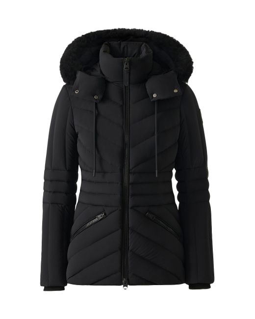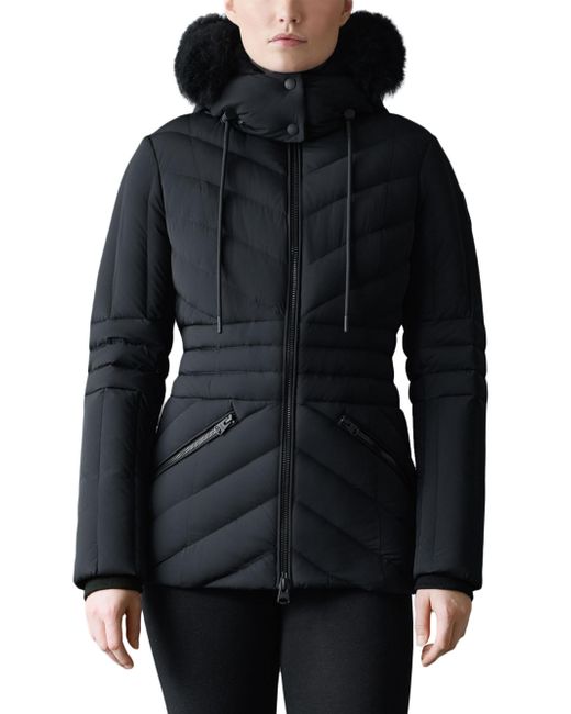 Crafted from a stretch performance fabric, Mackage's fitted Nadia down jacket flaunts a removable hood and shearling trim detail. This shaped quilted body features channel sleeves, a storm visor with adjustable drawcord, rib-knit cuffs, piped details, and zipper pockets. Engineered for deep winter conditions down to 5 (-15c) Stand collar, removable snap hood Long sleeves, interior rib-knit cuffs Front zip pockets Interior welt pocket Front zip closure 82% nylon/18% elastane Combo: 100% leather Lining: 82% nylon/18% elastane Fill: 100% duck down, 750+ fill power Hood trim: 100% shearling Fur type: Dyed sheep Fur origin: China Dry clean by a leather specialist Imported SIZE & FIT About 27.5" from shoulder to hem Model measurements: 5'10" tall Model is wearing a US size Small ABOUT THE BRAND Founded in Montreal in 1999, Mackage began as a comprehensive outerwear brand offering everything from fine leather jackets to tailored wool coats and down parkas. The label evolved to develop superior construction and comfort, creating flattering and elegant silhouettes. Mackage is committed to quality and performance with an eye toward aesthetic innovation in its women's, men's and kids' designs. Outerwear And Swimwear - Down > Mackage > Saks Fifth Avenue. Mackage. Color: Black. Size: Medium.