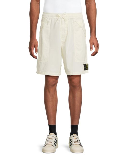 Crafted of stretch cotton, these shorts from Stone Island are designed with oversized slant-patch pockets at the sides and an elasticized drawstring waistband for optimal comfort. A signature logo patch details the left hem of this style. Drawstring waist Side slant-patch pockets Pulls on 97% cotton/3%spandex Hand wash Imported SIZE & FIT Rise: about 13" Inseam: about 19" Leg opening: about 24" Model measurements: 6'2" tall, 31" waist Model is wearing a US size 32 ABOUT THE BRAND Established in Ravarino, Italy in 1982, Stone Island's specialty lies in meticulously crafted sportswear and outerwear. Driven by intensive research in fabrics and textiles, the label is dedicated to the ongoing development of colors and dye recipes-of which they have 60,000. Each high-performance piece, from heavy-duty coats to everyday sportswear to shoes and accessories, is emblazoned with the brand's military-inspired logo and built for ultimate functionality. Mens Adv Contemporary - Advanced Contemp Collect > Stone Island > Saks Fifth Avenue. Stone Island. Color: Ivory. Size: 30.