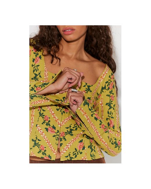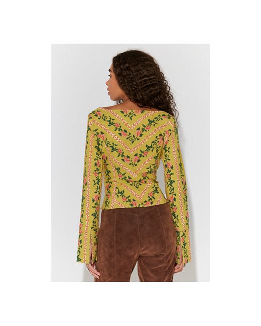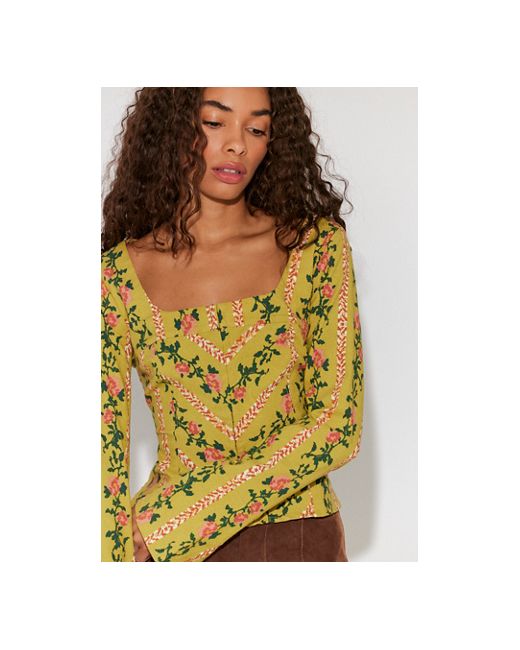 Full of femme details, this stunning top features a flattering corset-inspired silhouette and a structured cotton-blend fabrication for an effortless, wearable design. * Long sleeves * Square neckline * Hook-and-eye front closure Asher Printed Top at Free People in Citron Combo, Size: Small