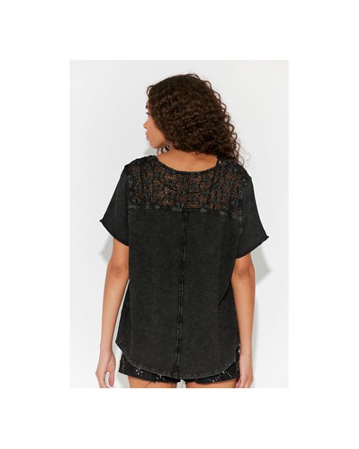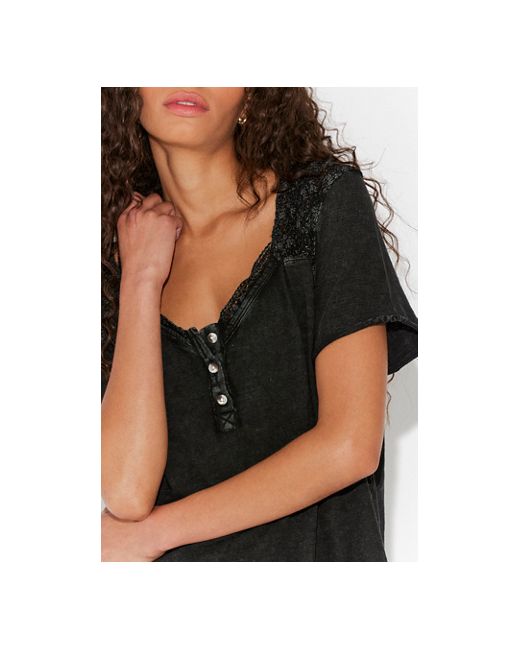 Bring back effortless style with this airy top from our We The Free collection, featuring a lightweight, heathered cotton fabrication, a relaxed henley silhouette, and lace inserts for a delicate touch. * Short sleeves * Patch pocket * Button detailing * Rolled hem detail We The Free Heirloom Henley at Free People in Black, Size: XS