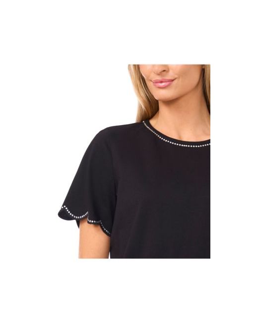 Women's Black Rhinestone Scalloped Knit Top