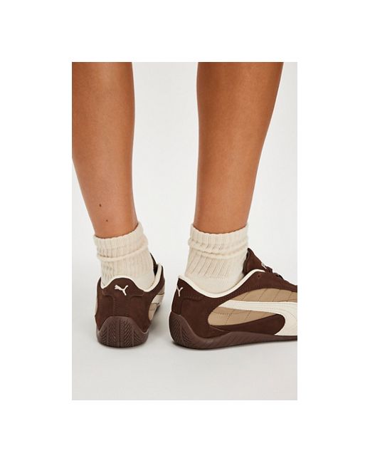 From a Formula 1® staple to a streetwear icon, this most-loved Puma sneaker is now available with quilted underlays for an added dimension, featuring the low-profile design, leather uppers, and Formstrip detail on the lateral side that you know and love. * Leather uppers with nubuck overlays * Low-top, lace-up style * Formstrip overlay and Puma details * Durable rubber outsole Puma Speedcat Plus Quilted Sneakers at Free People in Espresso Brown/Warm White, Size: US 6.5 M
