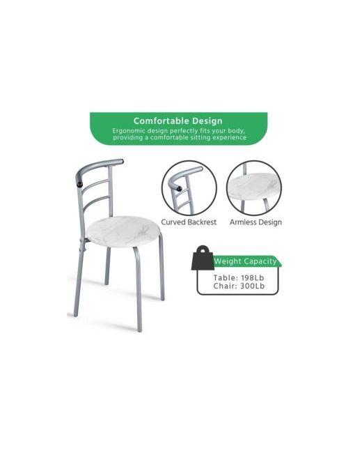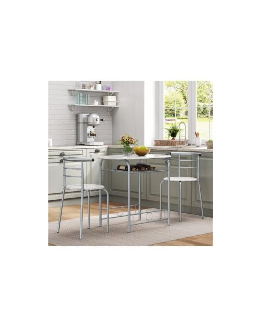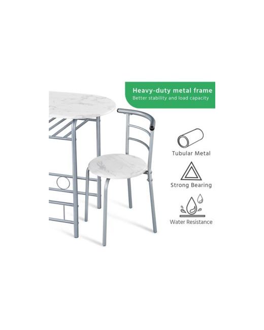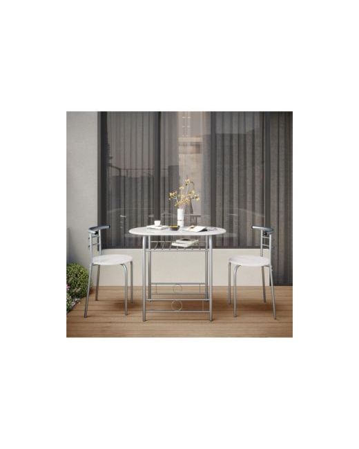 Create a welcoming dining spot with this compact table set, crafted from sturdy Mdf boards and a metal frame for lasting use. The waterproof tabletop and powder-coated legs simplify upkeep. Two chairs fit neatly beneath the table, saving space while offering cozy comfort for kitchens, apartments, or small dining areas.