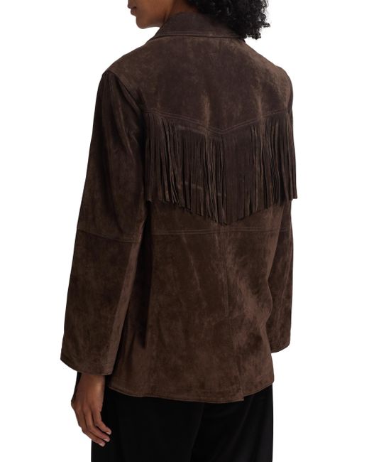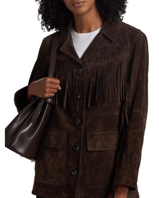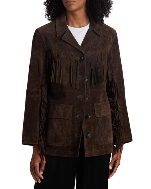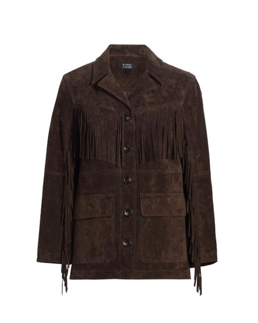 This button-front jacket from If Only Studio is designed with a notched collar, side flap patch pockets and fringe detailing. Notch collar Long sleeves Side flap pockets Fringe trim Button-front closure 100% suede Lining: 100% polyester Dry clean by leather specialist Imported SIZE & FIT About 29" from shoulder to hem Model measurements: 5'10" tall Model is wearing a US size Small. Contemporary Sportswear - Private Label Contempora > If Only Studio > Saks Fifth Avenue. If Only Studio. Color: Chocolate. Size: XS.