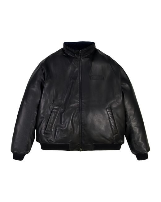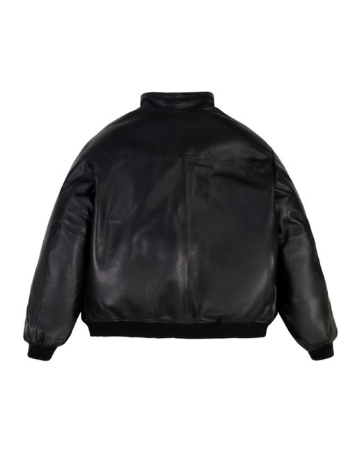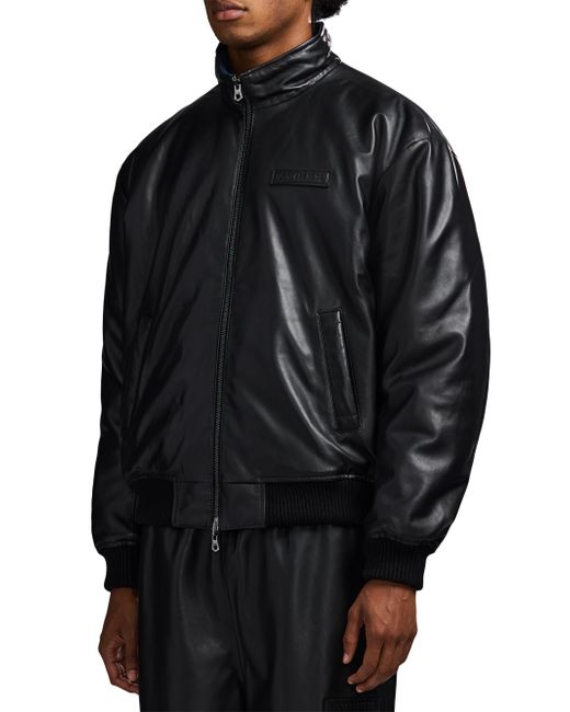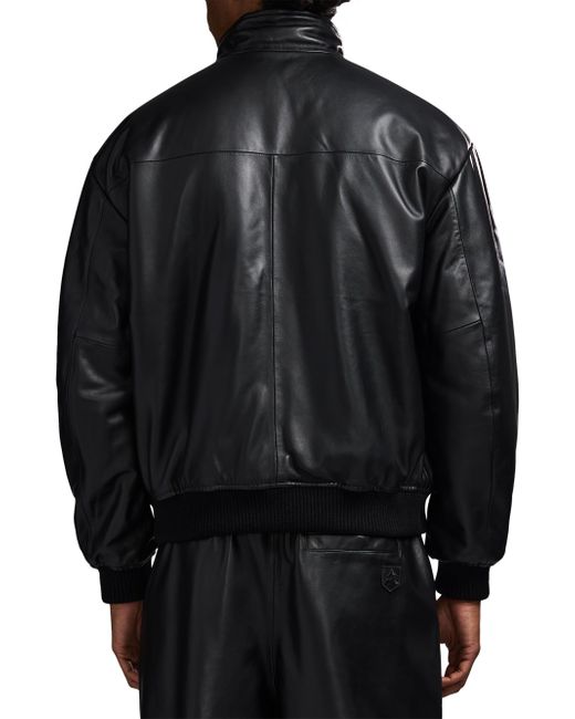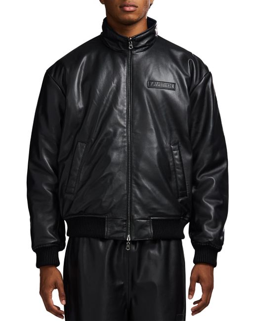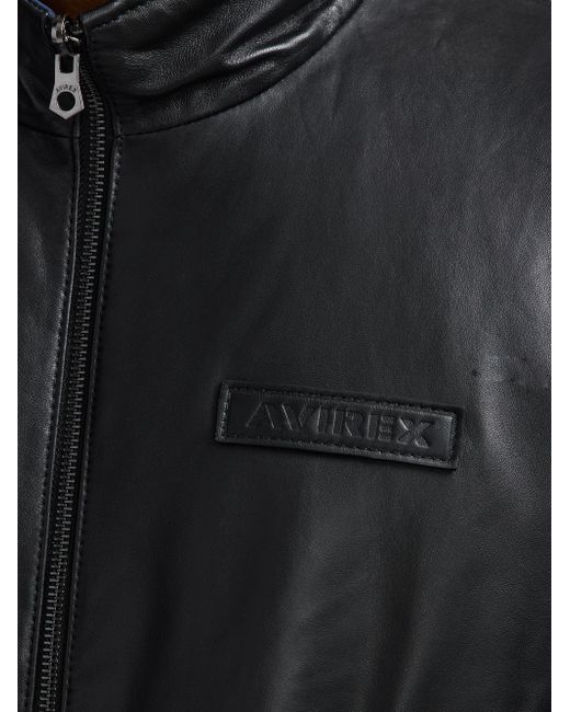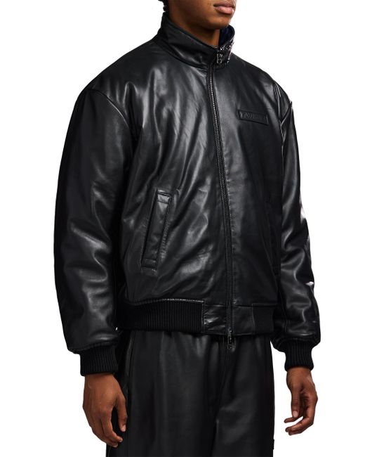 Crafted of leather, this track jacket from Avirex features a tonal embossed logo bar at the left chest, side slant pockets, and a front zip closure. Rib-knit trim lends added structure and comfort to this style. Stand collar Long sleeves Side slant pockets Rib-knit trim Front zip closure Leather Dry clean Imported SIZE & FIT Model measurements: 6'2" tall, 40" chest, 31" waist Model is wearing a US size Medium. Mens Modern Coll & Outer - Contemporary Outerwear > Avirex > Saks Fifth Avenue. Avirex. Color: Black. Size: Large.