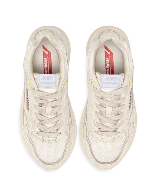 Autry's Hyperway meshlow-top sneakers are designed with a chunky sole. Round toe Lace-up style Leather/polyester upper Towel/mesh/nylon/leather lining Nylon/rubber/TPU sole Imported. Women's Shoes - Sneakers > Autry > Saks Fifth Avenue. Autry. Color: White. Size: 5.