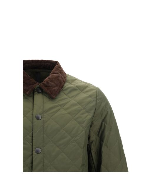 Barbour’s Heritage Quilt Jacket is an iconic garment that combines tradition and contemporary style. Featuring a velvet ribbed collar, it adds a touch of elegance and comfort. The two patch pockets on the front are embellished with a contrasting embroidered logo, providing a distinctive detail. The logo-embroidered snap button closure on the front ensures practicality, while the all-over quilted design offers a refined and warm texture. Season: AW25 Fit: Regular Composition: GENERAL 100% Nylon MADE IN MYANMAR