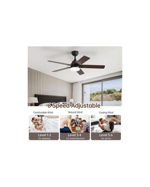This modern light brown ceiling fan, with a 5-blade design, is suitable for low ceiling Spaces, especially for medium-sized living rooms and studies. The installation method is flexible, and you can choose either bottom insertion or flat insertion. The fashionable design conceals ingenious ideas. The built-in Led light in the central shadow position makes the lighting more exquisite. The six-speed motor ensures efficient air supply throughout the year. Coupled with the handheld remote control for easy control of light and speed, it offers a comfortable and convenient user experience.
