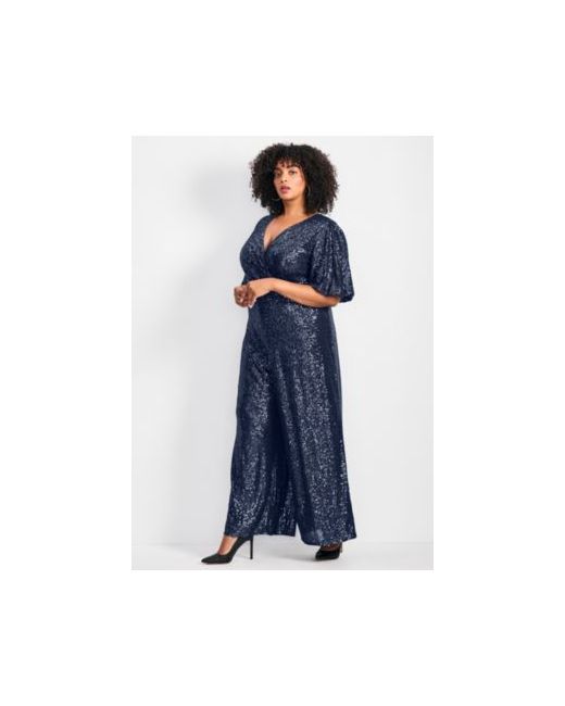 Step into the spotlight with the Nada Sequin Jumpsuit—a show-stopping ensemble that promises to make every entrance unforgettable. This embellished sequin wrap front jumpsuit features blouson short sleeves and wide-leg pants, offering a blend of glamour and comfort that lets you party the night away without a worry. Fabric: 100% Polyester Care: Hand wash Key Features Include: Inseam: 29" Sequin wrap front jumpsuit with wide leg. Fully lined. Plus Sizes 14-32Avenue. Imported