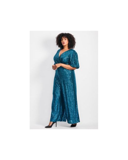 Step into the spotlight with the Nada Sequin Jumpsuit—a show-stopping ensemble that promises to make every entrance unforgettable. This embellished sequin wrap front jumpsuit features blouson short sleeves and wide-leg pants, offering a blend of glamour and comfort that lets you party the night away without a worry. Fabric: 100% Polyester Care: Hand wash Key Features Include: Inseam: 29" Sequin wrap front jumpsuit with wide leg. Fully lined. Plus Sizes 14-32Avenue. Imported