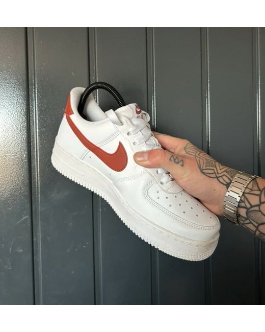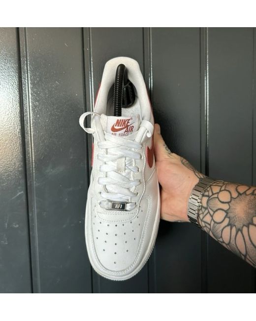 The Nike Air Force 1 Low is a stylish and comfortable sneaker designed for casual occasions. With a classic lace-up closure and a low-top shoe shaft style, this white with tones of red shoe features the iconic Nike logo accent. Made with a leather upper material and a rubber outsole, it offers overpronation support and is suitable for walking activities during the summer season. The standard shoe width and standard shoe size make it a versatile option for women who appreciate both fashion and function in their footwear.