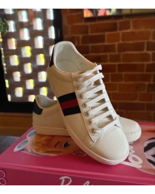 These Gucci Women's Trainers in size 6UK are a stylish and comfortable choice for casual occasions. Made from white leather with a rubber outsole, these sneakers feature a lace-up closure and a standard shoe width. The Gucci Ace model is crafted in Italy, showcasing the luxury brand's signature style. Perfect for the summer season, these trainers are a fashionable addition to any woman's wardrobe. Uk 6