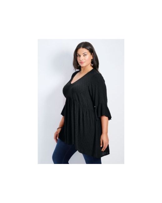 Discover the Veronica Dobby Tunic—a chic blend of comfort and style that s simply irresistible. With its flattering V neckline and dobby textured fabric, this floaty and feminine piece is your new go-to for effortless elegance and breezy charm. Fabric: 100% Viscose Care: Machine Wash Key Features Include: Length: 36". Pull on fit with V-neckline3/4 bell sleeves. Textured swiss dot. Plus Sizes 14-32Avenue. Imported