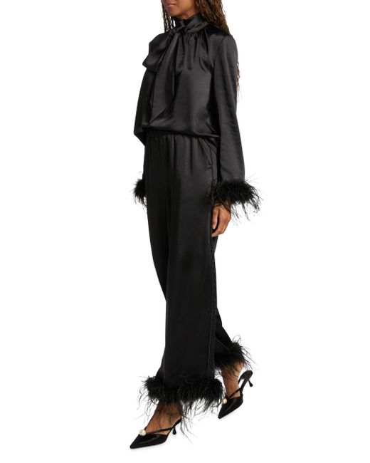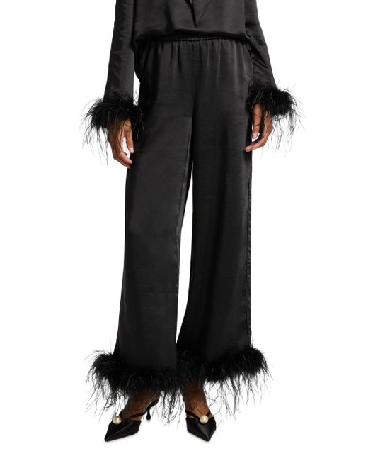 Crafted of textured satin, the Auggie pants from Toccin feature a playful feather-trimmed hem for a distinctive touch. Elasticized waist Feather cuffs Pulls on 100% polyester Trim: feathers Machine wash Imported SIZE & FIT Rise: about 10.4" Inseam: about 29" Model measurements: 5'10" tall Model is wearing a US size 4. Modern Collections - Branded Separates > Toccin > Saks Fifth Avenue. Toccin. Color: Jet. Size: 0.