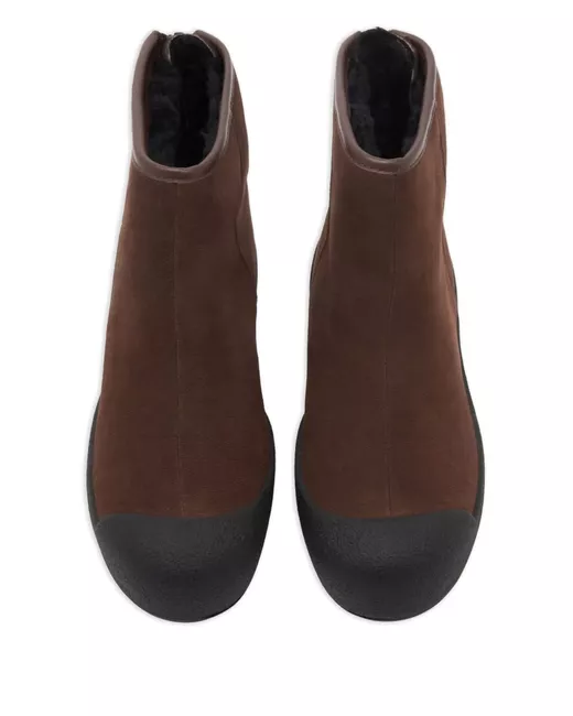brown suede texture debossed logo rear zip fastening multilayer sole water-resistant finish