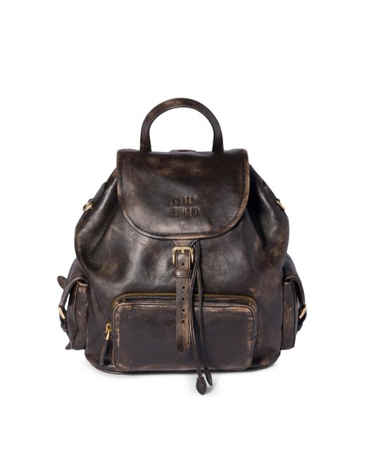 Leather handle Front zipper pocket Side flap pockets with buckle Gold-tone hardware Flap closure with buckle Leather lettering logo on the flap Cotton satin lining with zipper pocket Imported 100% Lamb Leather 25W x 29.5H x 12.5L cm / 9.8W x 11.6H x 4.9L in. Lsd Handbags - Miu Miu > Miu Miu > Saks Fifth Avenue. Miu Miu. Color: Brown.