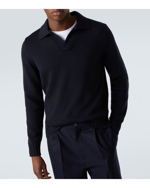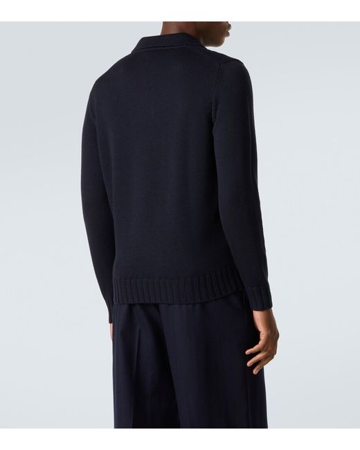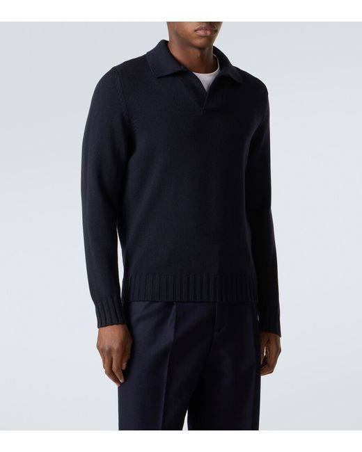 Material: 100% wool (merino wool). Care instructions: dry clean. Made in Italy. Designer color name: Dark Navy. Item color: blue. Collar: polo collar. Cuff: ribbed. Hem: ribbed. Wool.