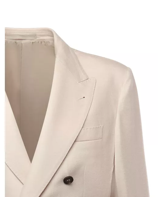 beige double-breasted button fastening flap pockets welt pocket long sleeves