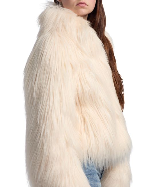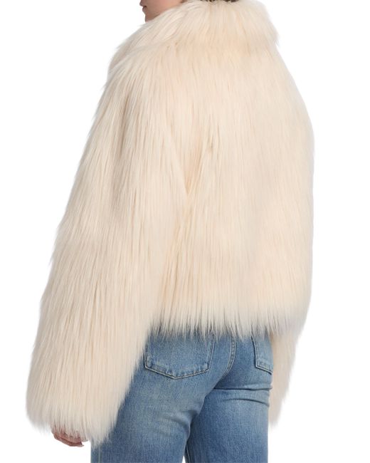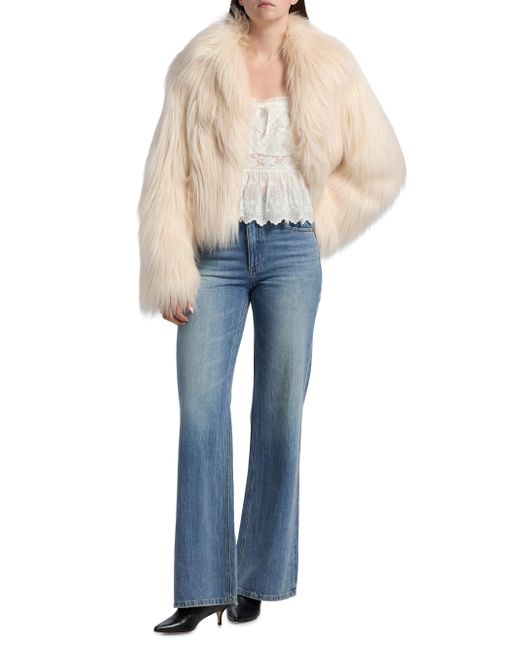 LoveShackFancy's Fallon collarless jacket is crafted of faux shearling. Collarless Long sleeves Front zip closure 80% modacrylic/20% acrylic pile Combo: 100% polyester Fur type: faux Dry clean Imported SIZE & FIT About 20.25" from shoulder to hem Model measurements: 5'10" tall Model is wearing a US size Small. Contemporary Sportswear - Trend > Loveshackfancy > Saks Fifth Avenue. LoveShackFancy. Color: Ivory. Size: XS.