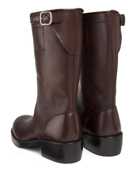 These boots from Dries Van Noten are crafted of leather and features a distinctive design, showcasing silvertone buckle detailing. Round toe Pulls on Leather upper Made in Italy ABOUT THE BRAND Designer Dries Van Noten was part of the Antwerp Six, an influential group of fashion designers who graduated from the Royal Academy of Fine Arts in Antwerp in the 1980s. Van Noten is known for his intellectual aesthetic, using artful textiles and lush prints to craft his ready-to-wear, shoes and accessories. Women's Shoes - Advanced Women's Designe > Dries Van Noten > Saks Fifth Avenue. Dries Van Noten. Color: Dark Brown. Size: 6.