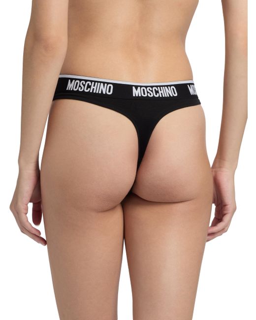 From the Moschino Intimo Donna Collection. Crafted of stretch cotton, these thongs from Moschino are defined by an elasticized logo waistband Includes two pairs Elasticized waistband Pulls on 95% cotton/5% elastane Machine wash Imported. Lingerie - Designer Foundations > Moschino > Saks Fifth Avenue. Moschino. Color: Black. Size: XS.
