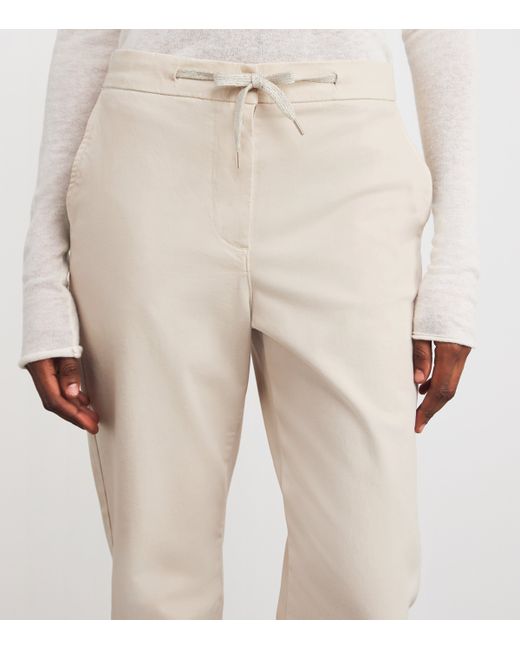 Eleventy's commitment to fine tailoring is evident in this streamlined silhouette, featuring a neat, slightly cropped leg and precise detailing. The trousers are finished with a glittering drawstring at the waist, adding playful sparkle to the refined silhouette.