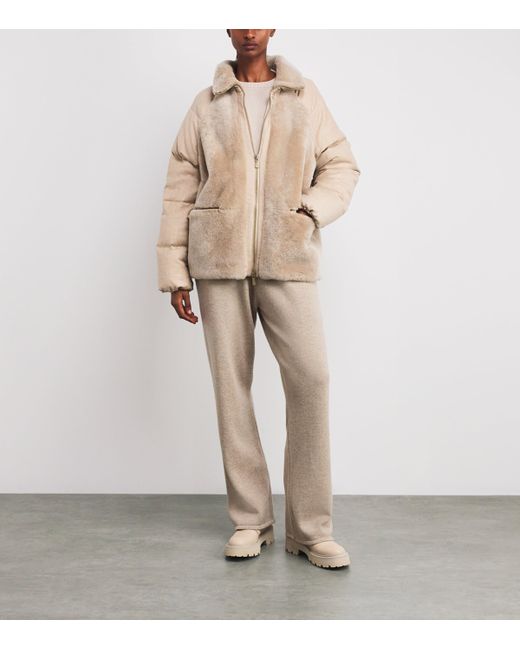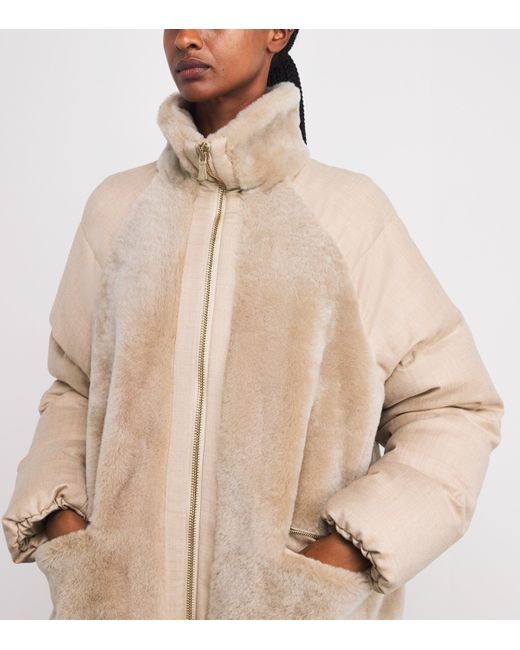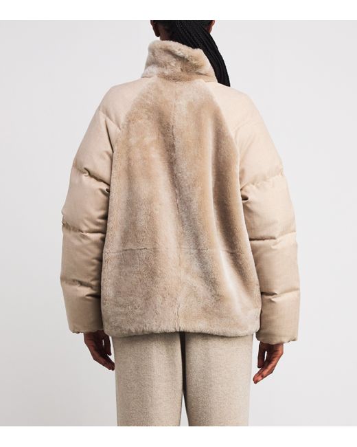 Eleventy's passion for modern aesthetics and artisanal craftsmanship shines in this jacket from the Italian fashion house. The body is crafted from Italian lamb shearling, which extends up to a high neckline for added warmth and a more expansive silhouette, while the raglan sleeves take on a quilted form in a smooth wool-blend.
