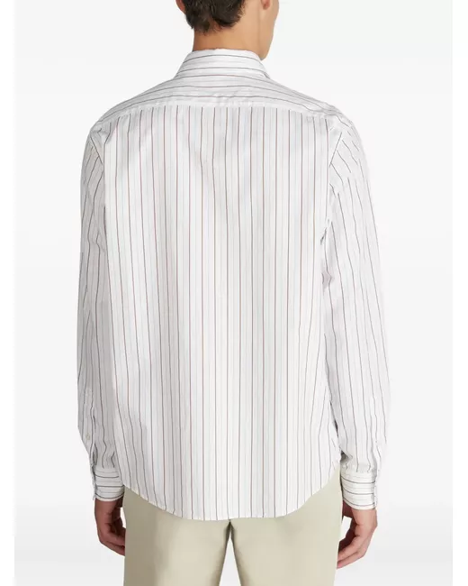 white striped pattern chest pocket button fastening long sleeves buttoned cuffs