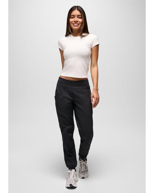 Stay comfortable all day in these versatile organic cotton canvas jogger with a mid-rise, fan-favorite waistband and reinforced knees for rugged adventures. Tackle the day in these durable pants made from a rugged organic cotton canvas construction. They have articulated knees for extra mobility and the double-layered fabric provides protection against abrasions as you climb and hike. Our fan-favorite stretchy knit wasitband stays put while you move. Plenty of pockets, including a zip pocket on the left leg, keep your keys and cards safely secure. | Womens prAna Kanab Pant in Dark Gray, Size XL