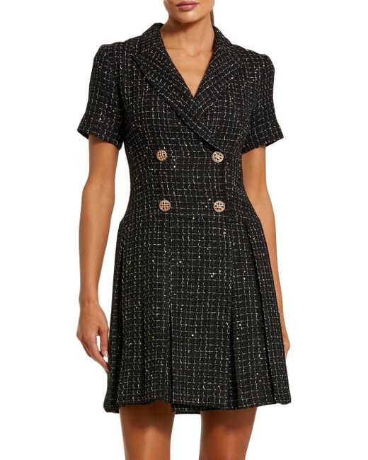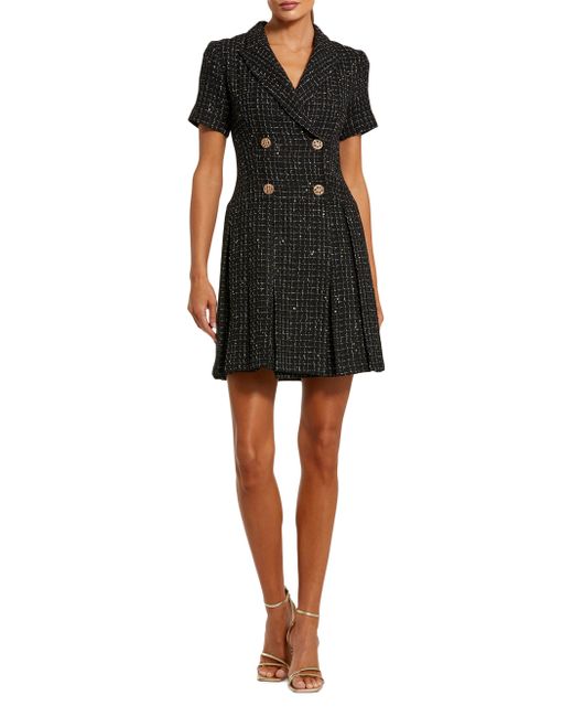 This Mac Duggal minidress is crafted of tweed in a double-breasted blazer-inspired silhouette. A pleated hem lends added movement to this short-sleeve style. Notch lapels Short sleeves Double-breasted button-front closure 100% polyester Dry clean Imported SIZE & FIT About 34" from shoulder to hem Model measurements: 5'10" tall Model is wearing a US size 4. Dress Collections - Mac Duggal > Mac Duggal > Saks Fifth Avenue. Mac Duggal. Color: Black. Size: 2.