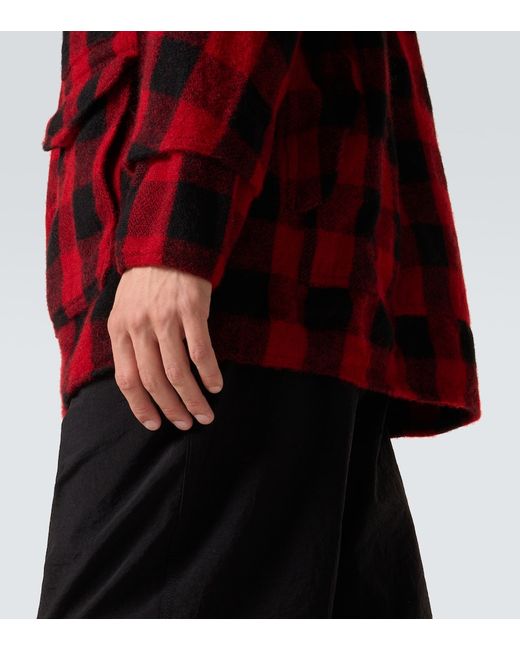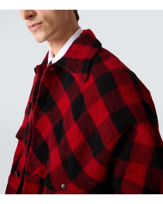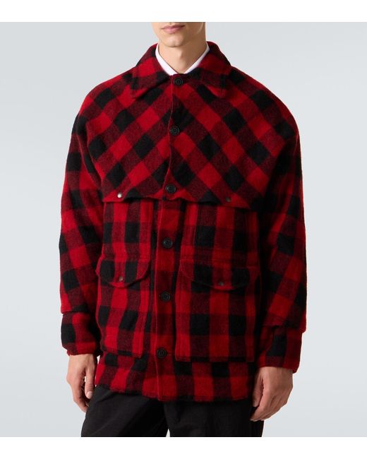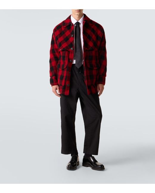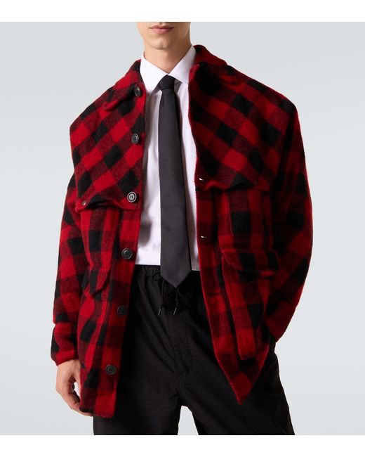 Material: 100% wool. Care instructions: dry clean. Made in Japan. Designer color name: Red Black. Item color: red, black. Wool. Cuff: buttoned. Pockets: patch pockets, flap pockets. Closure: buttoned front.