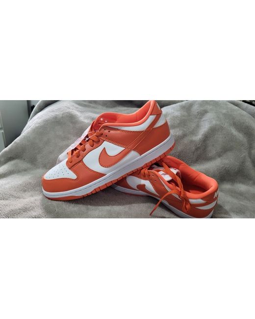 The Nike Dunk Low SP is a stylish and comfortable pair of men's trainers. Featuring a low top design with a lace-up closure, these sneakers are ideal for casual occasions. The orange colourway adds a vibrant touch to your outfit, while the rubber outsole provides good traction. Designed for basketball performance, these Nike Dunks offer both style and practicality, making them a versatile choice for summer wear. Made with a leather upper and fabric lining, these shoes are durable and breathable, ensuring you can wear them all day long. sadly no box