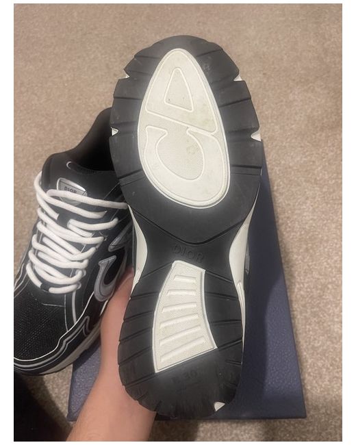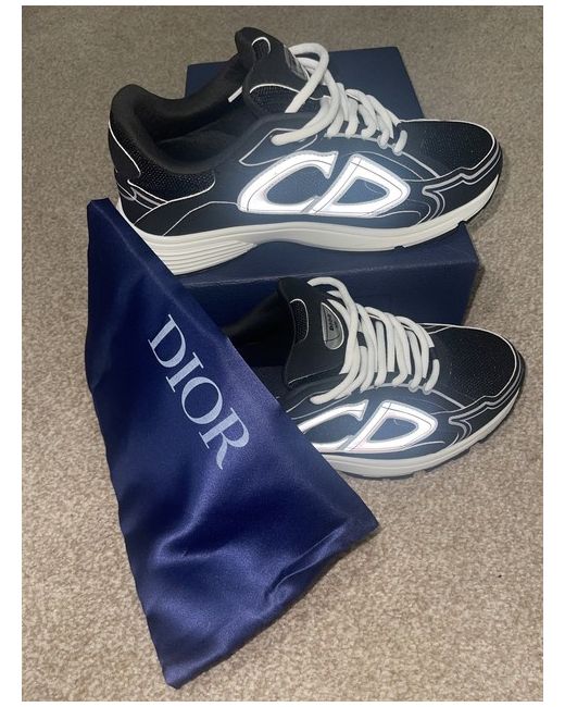 The Dior B30 trainers in UK size 8 are a stylish and versatile choice for casual occasions. Made in Italy, these black lace-up sneakers feature a rubber outsole and reflective accents, giving them a modern touch. The mesh upper and foam insole provide comfort and breathability, while the standard shoe width ensures a good fit. With the iconic Dior branding and a nod to the 30s theme, these trainers are a chic addition to any man's wardrobe. Perfect for spring, they can also be worn for light boxing activities.