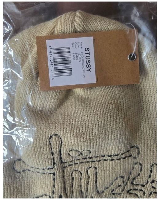 Stussy Stitch Basic Logo Skullcap Beanie One Size Sand
