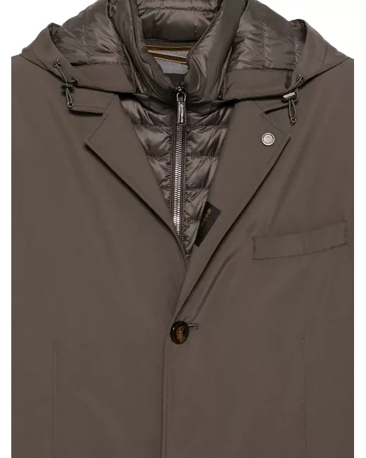 brown detachable hood button fastening zip fastening detachable lining multiple pockets buttoned central rear vent